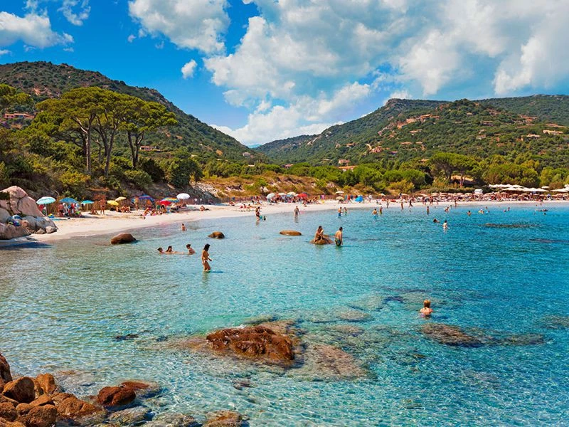 The island's climate is predominantly Mediterranean, characterized by hot, dry summers and mild, rainy winters, with a more alpine climate in its mountainous interior. The landscape is extraordinarily varied, featuring high granite peaks, dense forests of Laricio pine and oak, maquis shrubland, and over 1,000 kilometers of coastline with cliffs, sandy beaches, and calanques (rocky inlets). Native wildlife includes the Corsican red deer, mouflon (a wild sheep), and numerous endemic bird and plant species. While human influence is evident in cultivated valleys and coastal development, large areas remain wild and are well-preserved within the natural park.